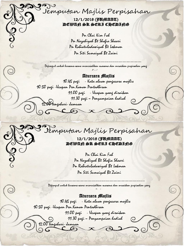 Kad Jemputan Majlis Hi Tea Skusj 12 Cikgu Ayu Dot My from www.cikguayu.my Anda juga boleh sertakan ucapan yang menarik untuk ibu. Kad ucapan persaraan en sham. Contoh kad ucapan persaraan guru. Mengucapkan sebuah ucapan meninggal dunia atau belasungkawa merupakan salah satu bukti sebuah empati kepada seseorang. Moshims design kad ucapan selamat bersara. Teks ucapan kad ucapan perpisahan. Terdapat banyak jenis kad ucapan hari ibu yang boleh anda hasilkan dengan kreativiti tersendiri, lebih best lagi jika anda boleh hasilkan kad hari ibu diy. Teks ucapan kad ucapan perpisahan rakan sekerja.
